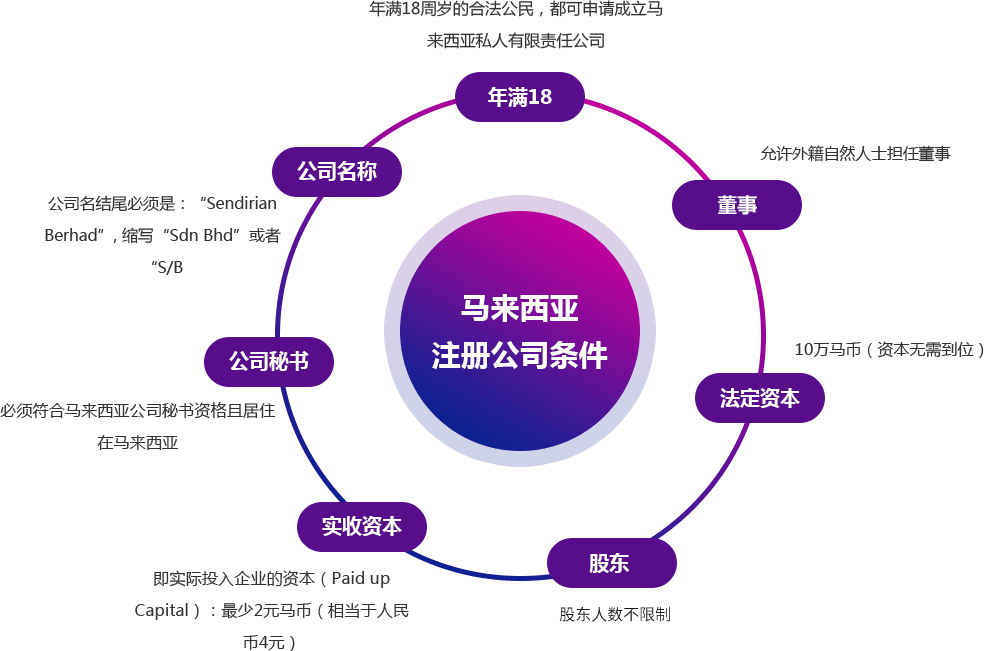 擬定馬來(lái)西亞公司注冊(cè)英文名稱;至少1名董事、股東的護(hù)照復(fù)印件或者身份證復(fù)印件、股份分配、委托書(shū)、章程、公司設(shè)立的目的及主營(yíng)項(xiàng)目等。